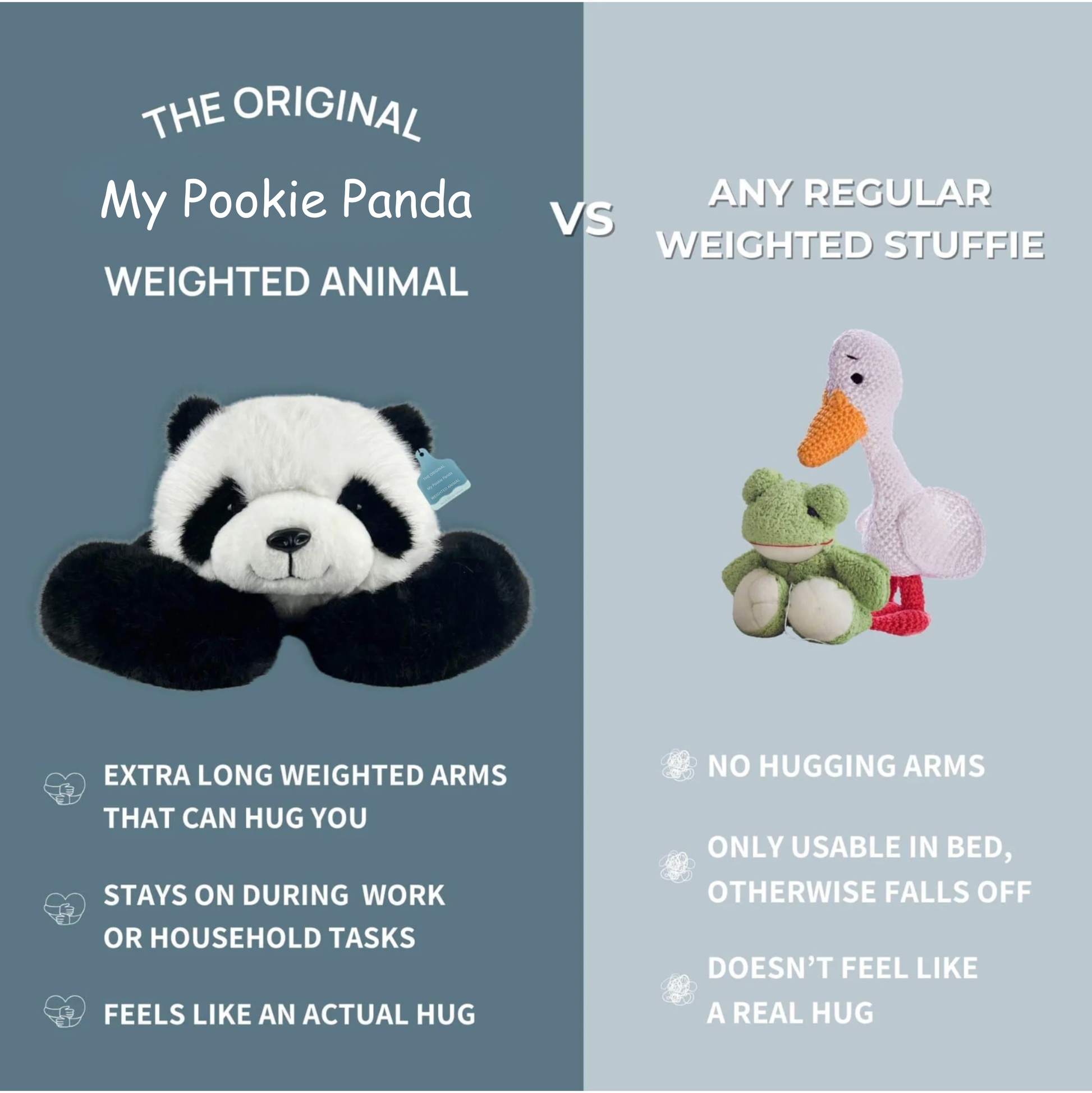 Meet My Pookie Panda & Sola — a weighted stuffed animal with extra-long arms and paws that truly hug you back.