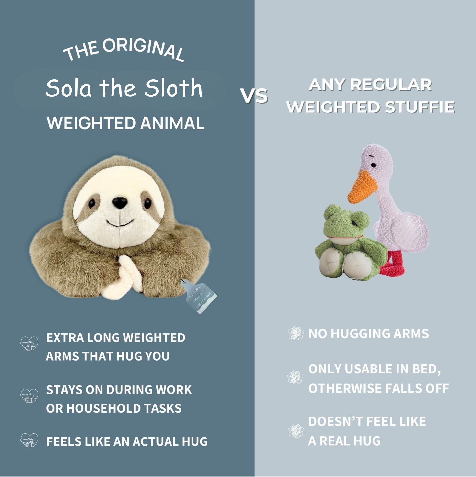 When you hug Panda/Sola or let the weighted arms wrap around you, your body receives a simple but powerful message: